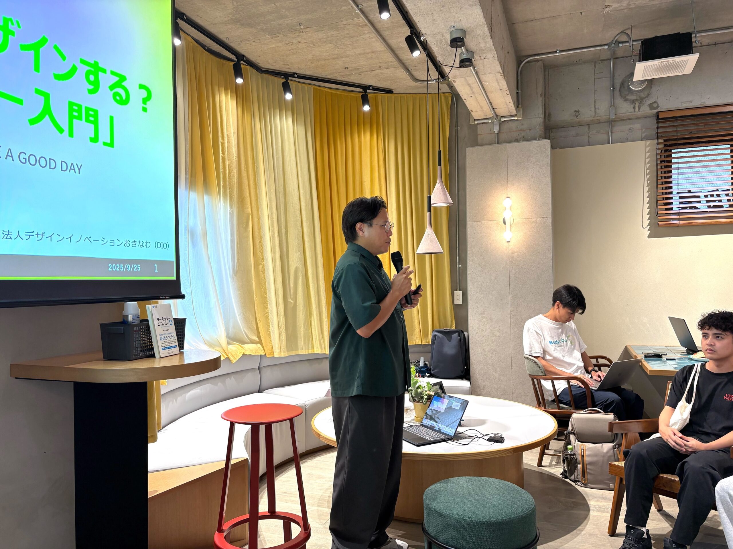 2025年9月25日、那覇市・東町のリノベーションビル「HAVE A GOOD DAY」(※)にて、サーキュラーエコノミーをテーマにした勉強会「【デザインイノベーションおきなわ × eiicon × HAVE A GOOD DAY】循環する地域をどうデザインする?サーキュラーエコノミー入門」を開催しました。