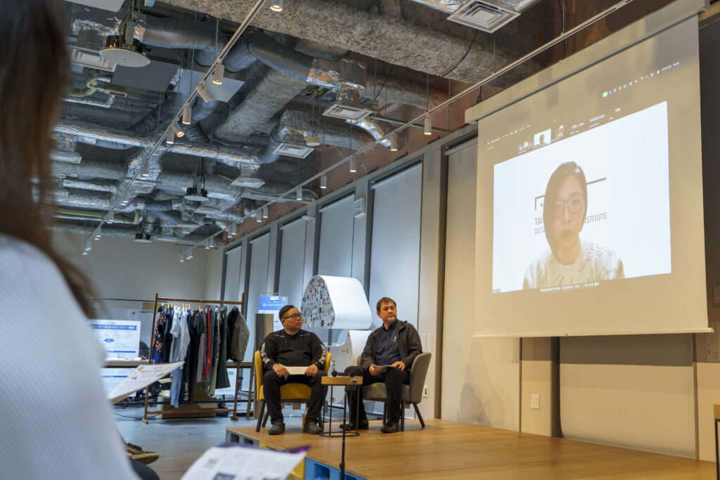 本パートでは、視察先の1つ・台湾電力を中心に議論。まず、DIOの大城直也から、なぜ電力会社にデザインが必要だったのかを歴史的・社会的背景から紹介し、社会との関係を再構築するためのデザインの一環としてクリーンエネルギーの体験施設「TAIPOWER D/S ONE 電幻1號所」を設立したことを言及しました。さらには、送電施設等の廃材を“企業の物語”に変える切り口でデザインを導入し、プロダクトへと再生していきました。会場内にはそのプロダクトの一部も展示し、来場者の理解促進に役立てました。