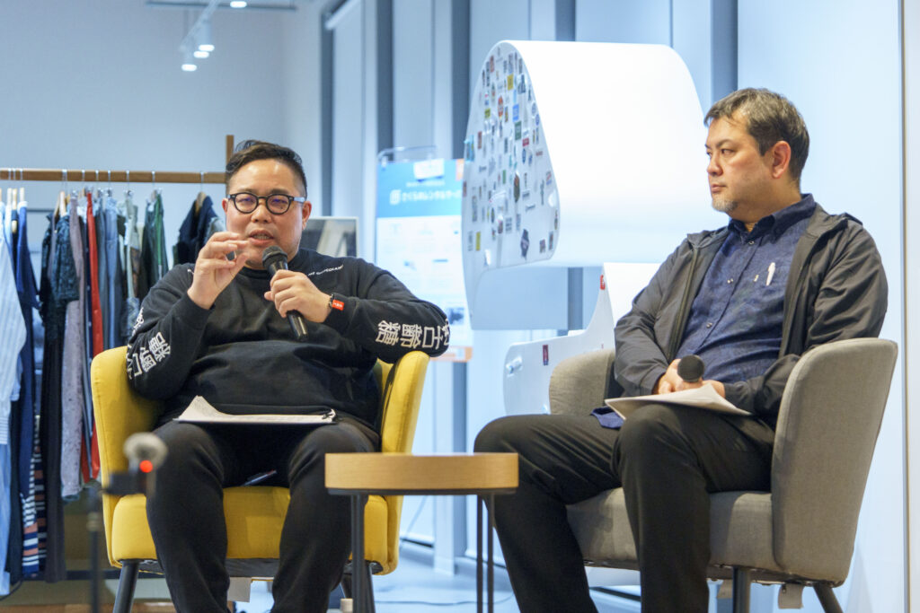 第2部の最後のパートは、オンラインにて参加した、知財戦略エキスパートの平林篤哉(ひらばやし・あつや)さんとのセッション。最初に、DIOの繁田謙より、地域デザインと知的財産の関係性について言及。地域デザイン力を向上することで、地域に有形・無形の知的財産が生まれる土壌が築かれることを伝えました。
