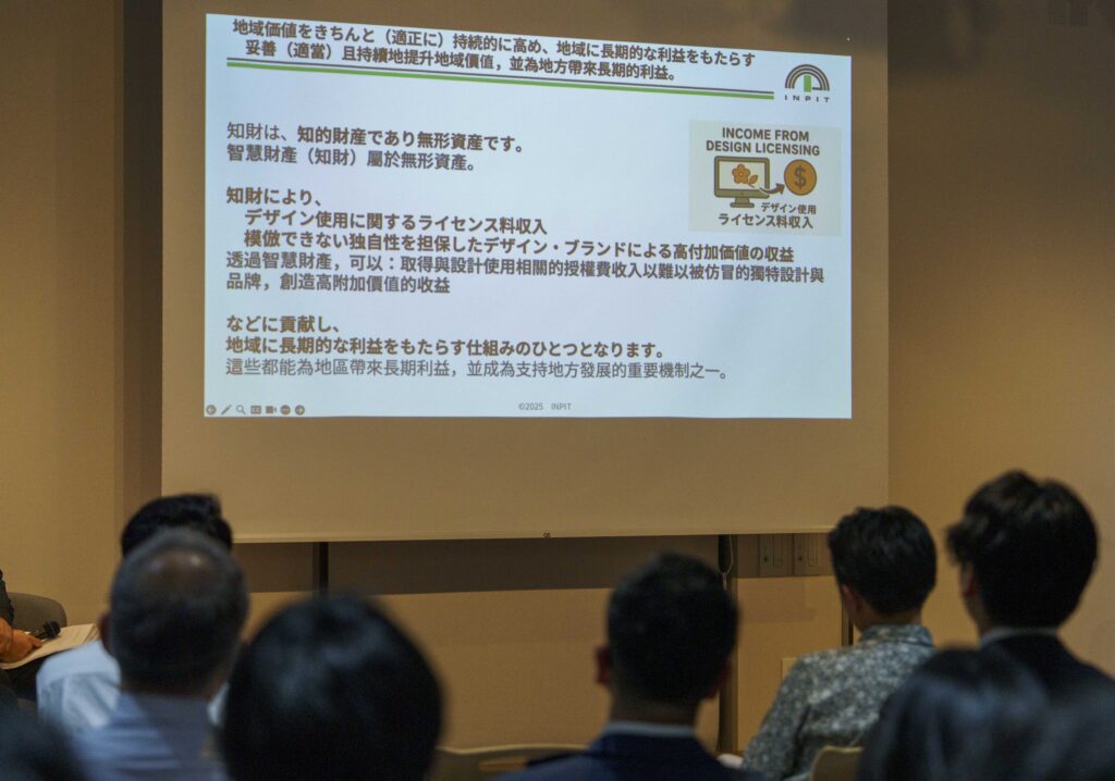 この考え方が示しているのは、知財が法務処理ではなく「社会実装の設計」という点です。デザインが価値を生むプロセスだとすれば、知財はその価値を持続可能な関係と経済活動に変換するプロセスで、このTDRIの実践は、地域プロジェクトにおいても、創造と運用を同時に設計する必要性を示唆するものとなりました。