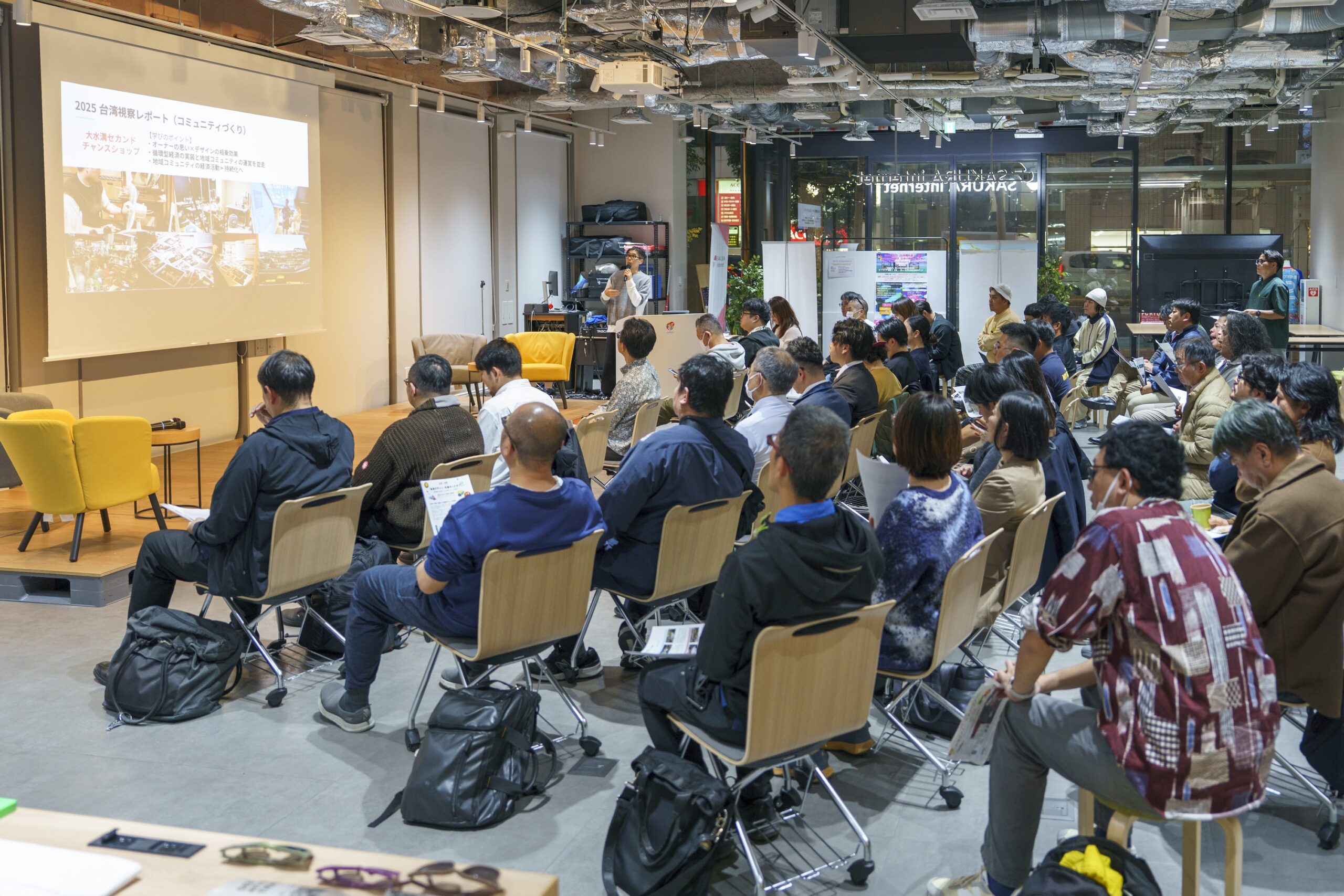 2部構成の第1部は2025年10月に行った台湾での視察ツアーやワークショップの様子をリポート。台湾の視察ツアーの参加者は、行政職員、支援機関、投資家、クリエイター、民間企業、学生などさまざまな分野で活躍する12名を選定し、事前勉強会を経て視察に向けた意識合わせを実施した上で台湾入りしました。
