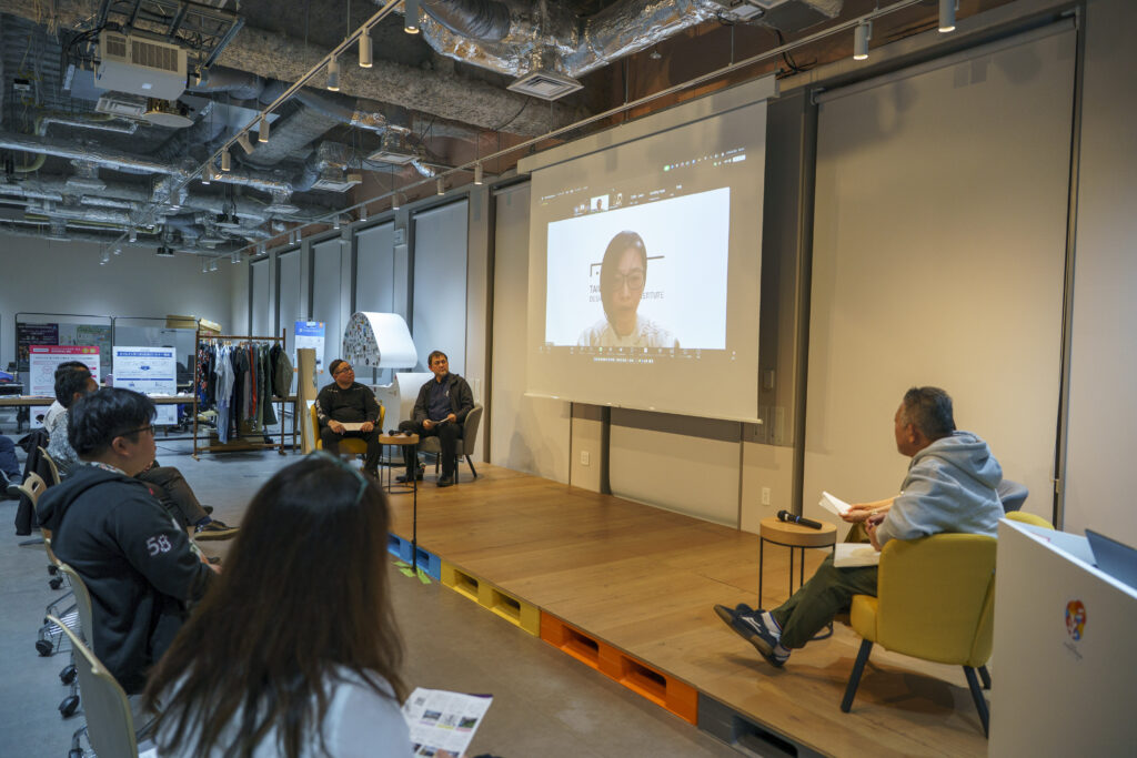 南城市職員の喜瀬斗志也(きせ・としや)さん、デザイナーの久田友太(くだ・ゆうた)さんとともに、台湾での行政・社会デザインの実践事例を基に、地域政策へのデザイン導入の可能性と課題について共有。喜瀬さんは10月の視察を通じて得られた視点や、DIO×TDRIの連名によるパブリック・コメントをベースに知念エリアの過疎計画の施策に向けてデザイン思考を入れたアプローチを展開していきたいと発言。