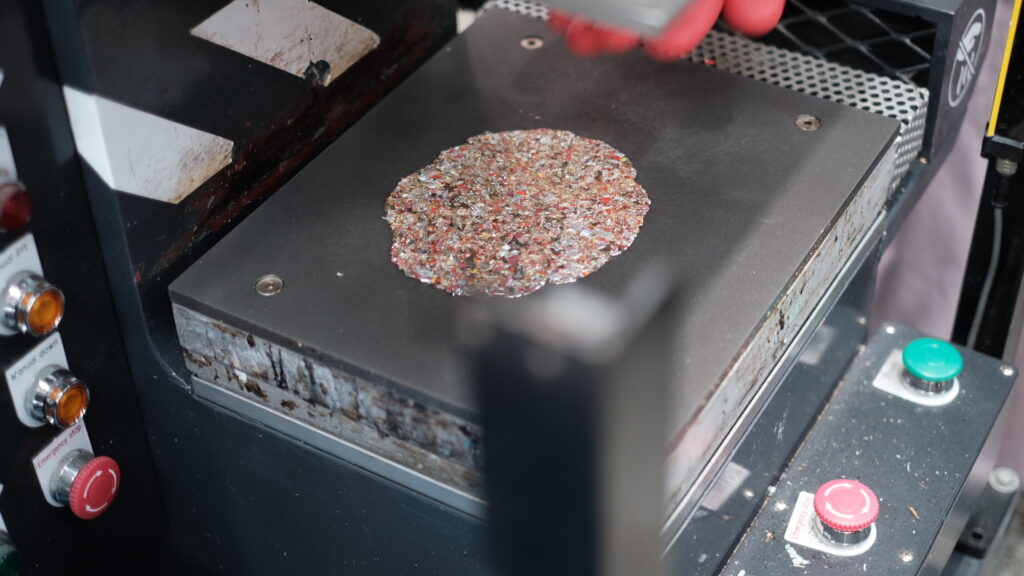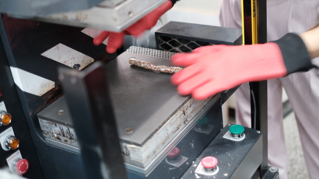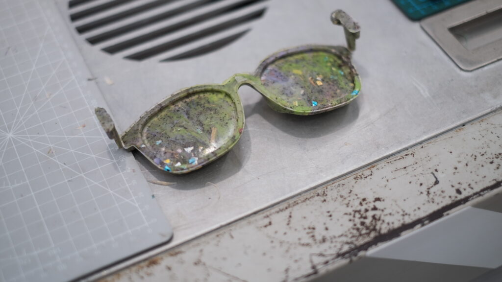 ここ「Trash Kitchen」には廃プラスチックをアップサイクル商品に変える機械「TRASHPRESSO」の簡易版「miniTRASHPRESSO」が設置され、今回は廃プラスチックを使ってサングラスをつくりました。