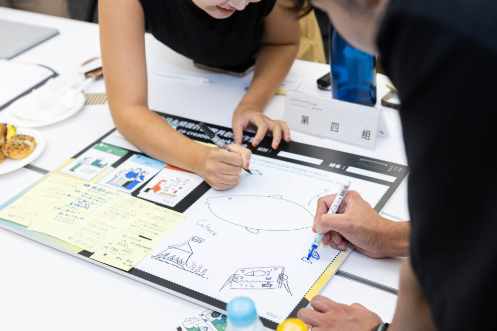 このツールは、教育・デザイン思考研修だけでなく、政策設計・社会構想、地域共創のワークショップなど広く活用できるように設計されていて、実際に、大学でのデザイン思考のコースやデザインの専門ではない学生に指導する際に活用しています。