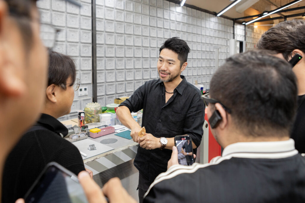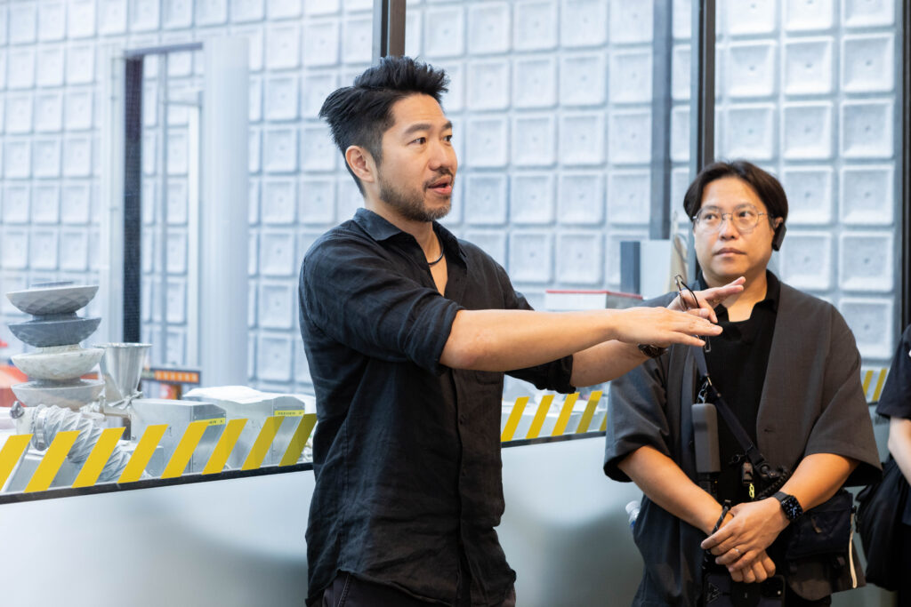 台東県政府とのプロジェクト「Taitung Aboriginal Galleria」では、オーストロネシア文化のストーリーを大事にしながら、廃棄されたコンテナを活用し、そこにデザイン視点を組み込んで、コンテナをそれぞれ異なる方向へ配置することで「市場」空間の雰囲気を創出。地域のストーリー×デザイン×サーキュラーエコノミーを建築の面で融合させた見事な事例に、沖縄メンバーは関心の目を向けながら熱心にメモを取っていました。